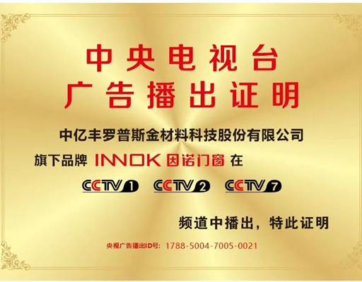 CCTV中央电视台展播 近日,INNOK因诺门窗与CCTV达成战略合作关系,将在中国中央电视台CCTV1、CCTV2、CCTV7权威媒体荣誉播出。 CCTV作为具国际影响力的媒体,在消费者心目中有着很强的影响力和公信力,而且,央视对于广告投放有着非常严格的审查机制,INNOK因诺...